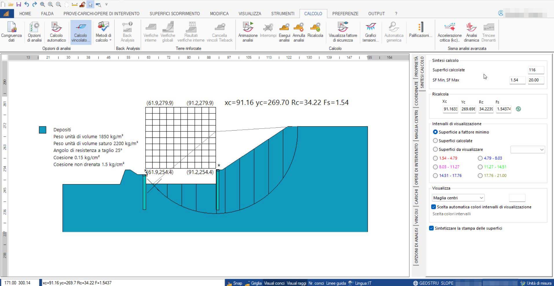 - Individuazione della superficie di scorrimento critica tramite il calcolo automatico